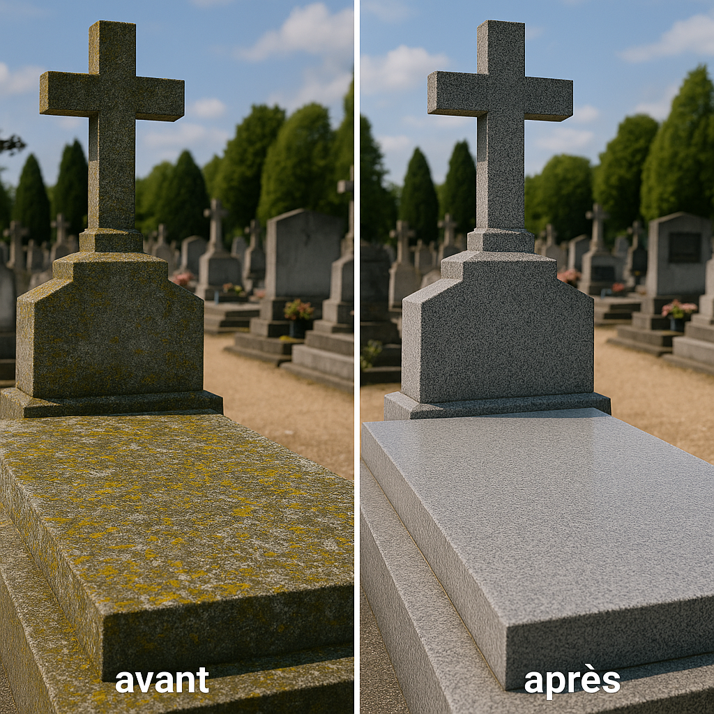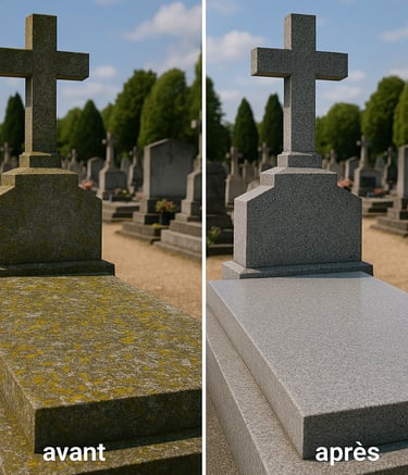 Nettoyage professionnel de tombes et monuments funéraires.
